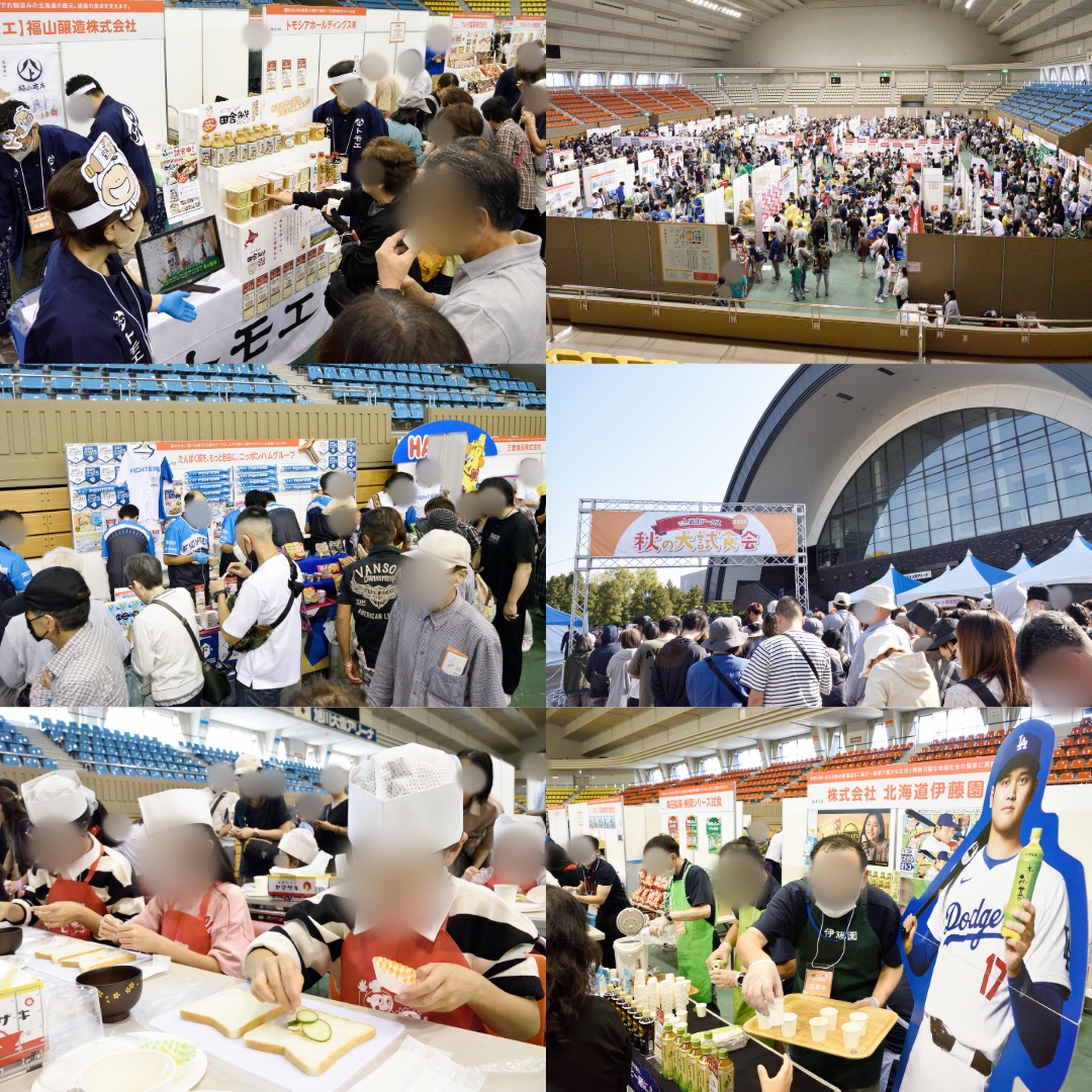 2025年10月4日(土)に道北アークス大雪アリーナにて、秋の大試食会を開催いたしました。 お客様と商品の新たな出会いの機会を作りたいと企画いたしましたところ、 たくさんのお客様にお越しいただき、たくさんある各メーカーさんのブースはどこも大盛況でした。 初めての開催で至らぬ点も多々ございましたが、ご来場いただきましたお客様、出店いただいた 各メーカー様、運営事務局の皆様、ありがとうございました。